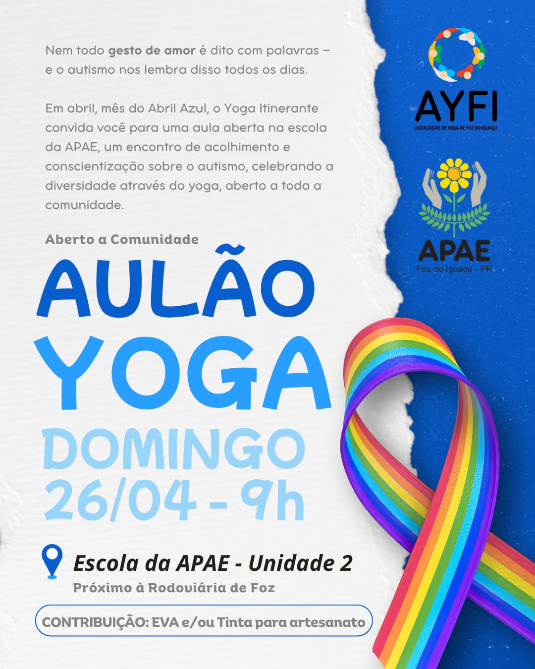 A Associação de Yoga de Foz do Iguaçu (AYFI) realiza a quarta edição do projeto Yoga Itinerante. O evento une saúde, bem-estar e solidariedade em prol da APAE do município.