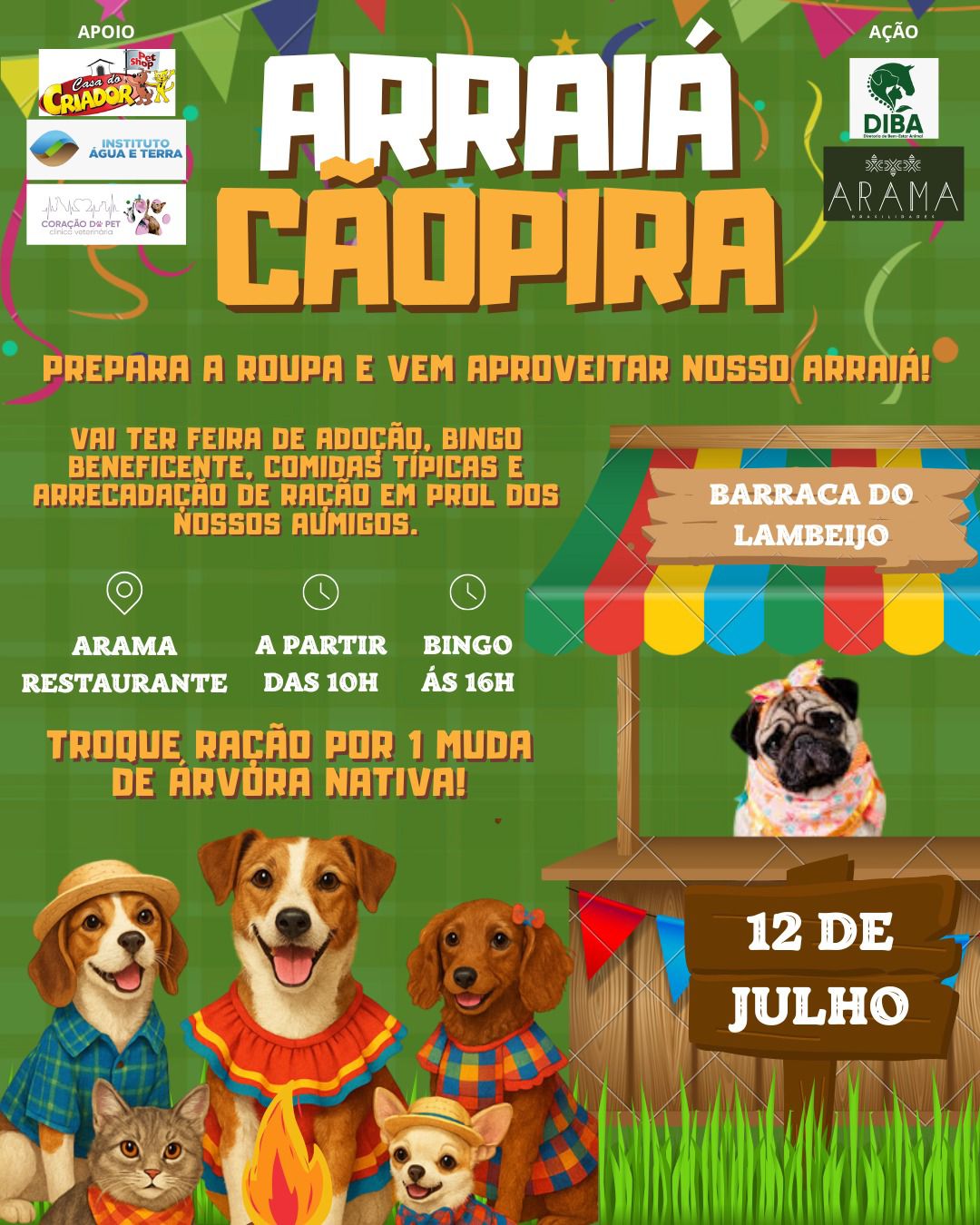 Comidas típicas, feira de adoção de cães e gatos, bingo beneficente e até troca de ração por mudas de plantas são algumas das atrações do Arraiá Cãopira, que será realizado neste sábado (12), a partir das 10h, no Arama Restaurante, em Foz do Iguaçu.