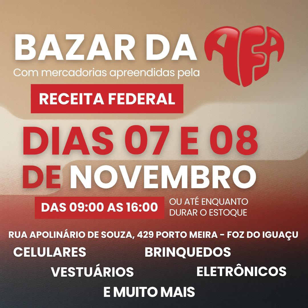 🗓️ Nos dias 7 e 8 de NOVEMBRO (sexta e sábado) vai ter Bazar da Associação Fraternidade Aliança.
