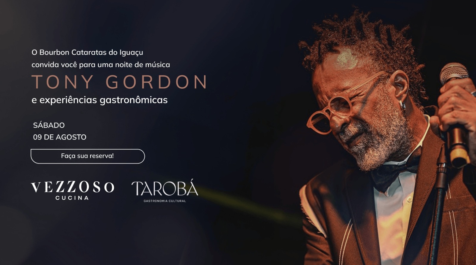 O evento contará com show intimista do cantor Tony Gordon, uma das vozes mais marcantes do soul e do jazz brasileiro. A apresentação acontece no Lobby Bar do resort, a partir das 19h30, seguida por experiências gastronômicas exclusivas nos restaurantes Vezzoso Cucina e Tarobá.