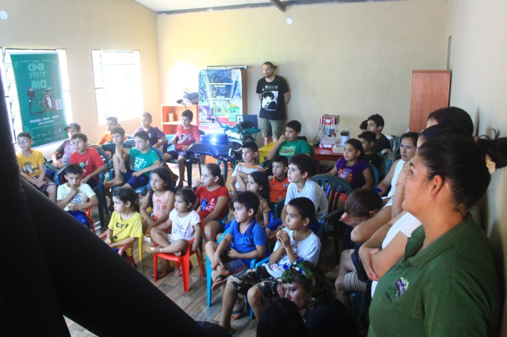 O Cine Verde em Bici promoveu sessões de cinema itinerante com uma bicicleta adaptada, levando filmes com temáticas ambientais a comunidades de Foz do Iguaçu, Puerto Iguazú (ARG) e Ciudad del Este (PY). A iniciativa alcançou mais de 500 pessoas, principalmente crianças, muitas delas tendo o primeiro contato com o cinema.