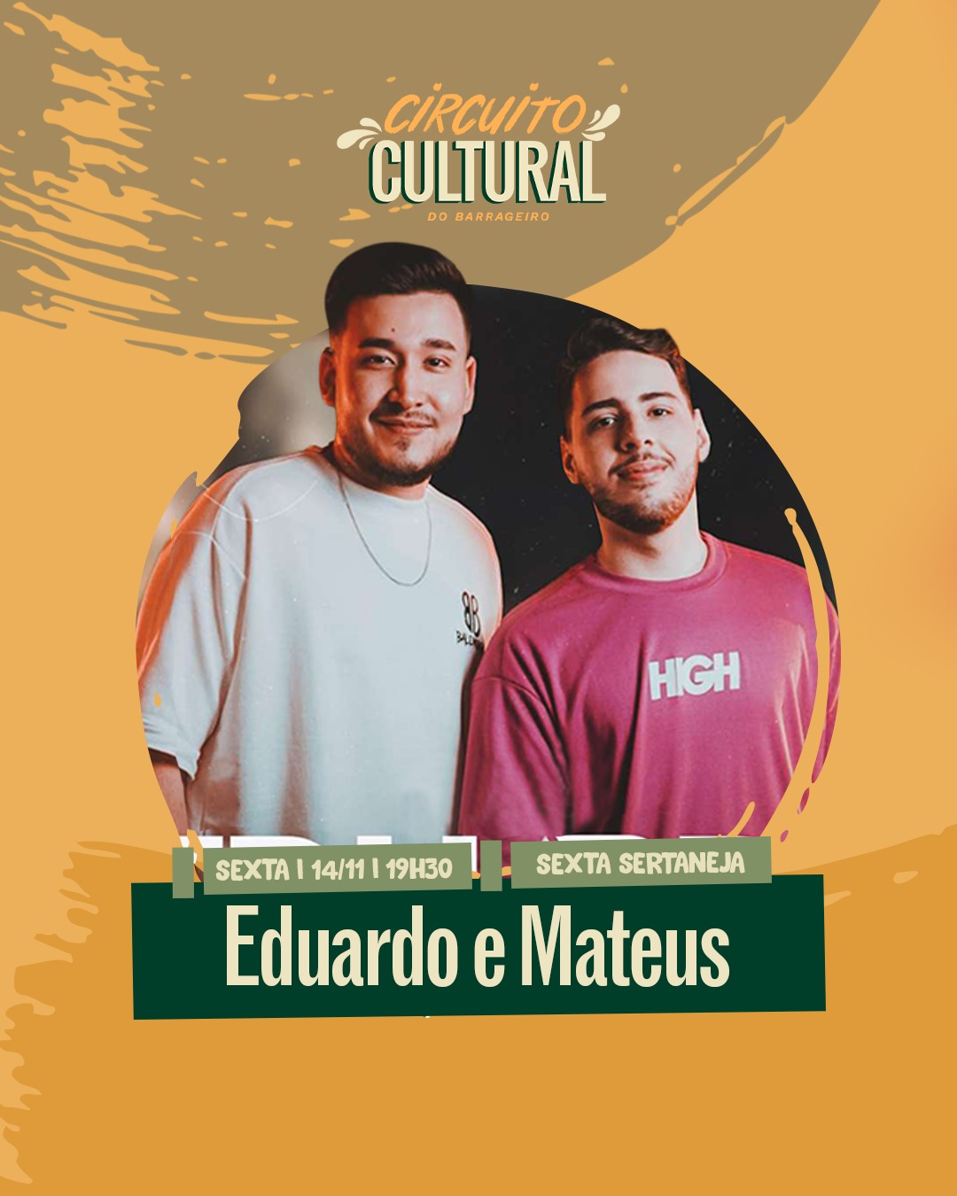 ▪️ Sexta (14/11) – Eduardo e Mateus (Sertanejo)