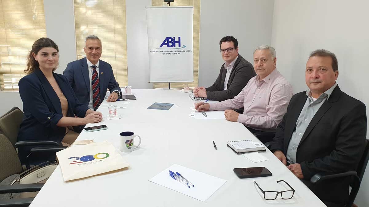 Representantes do Consulado dos Estados Unidos em São Paulo visitaram a sede da ABIH Regional Oeste Paraná, em Foz do Iguaçu, com o objetivo de estreitar parcerias e reforçar o atendimento a cidadãos norte-americanos que visitam a cidade. O encontro ocorreu na sede da entidade, no Jardim Central.