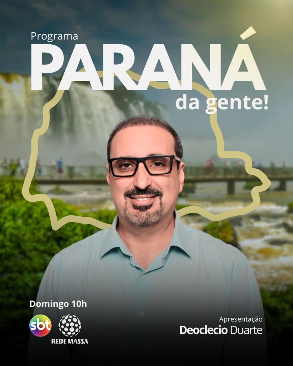 O empresário e apresentador Deoclecio Duarte vem conquistando cada vez mais telespectadores com o programa “Paraná da Gente”, exibido aos domingos, às 10h da manhã, pela Rede Massa | SBT. Em apenas 30 dias no ar, a atração já se destaca pelo formato leve, positivo e conectado com a realidade das comunidades da região Oeste do Paraná.