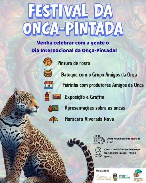 No dia 29 de novembro, Foz do Iguaçu vai rugir de alegria em homenagem a um dos animais mais icônicos e fascinantes da América do Sul: a onça-pintada. Para celebrar a data, o Projeto Onças do Iguaçu preparou uma programação especial no Centro de Visitantes do Parque Nacional do Iguaçu, cheia de atividades culturais, educativas e artísticas que prometem encantar toda a família.