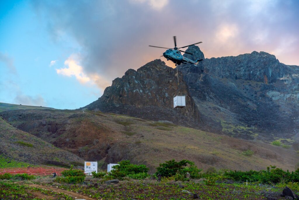 A missão contou com 61 operações aéreas verticais, 38 pousos diretos e até o transporte de um trator por helicóptero — esforço que também possibilitou a retirada de 10 toneladas de resíduos acumulados, devolvendo à ilha parte de sua pureza original.