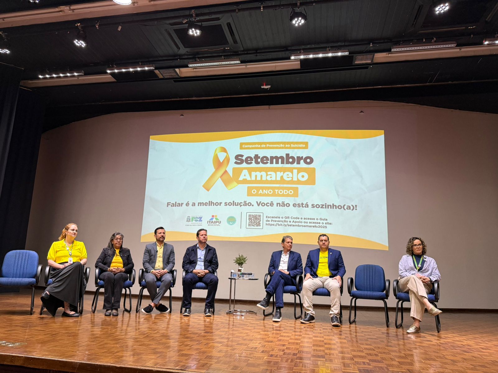 A Prefeitura de Foz do Iguaçu deu início, nesta segunda-feira (1º), à campanha Setembro Amarelo 2025, voltada à prevenção ao suicídio e à promoção da saúde mental. O evento de abertura ocorreu no auditório da UDC Faculdades e contou com a presença do prefeito General Silva e Luna, do vice-prefeito Ricardinho, do secretário municipal de Saúde, Fabio de Mello, e do presidente da Câmara, vereador Paulo Debrito.