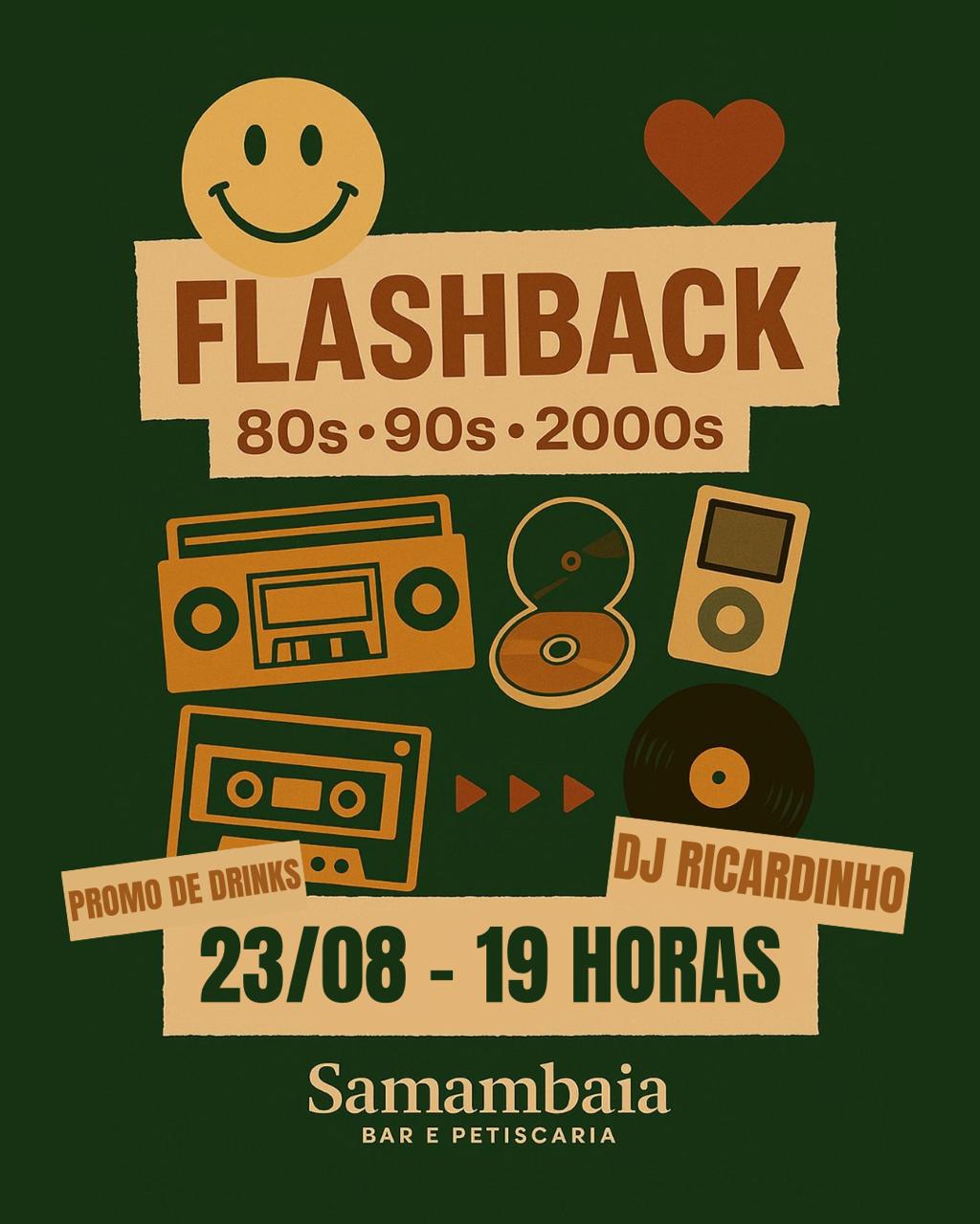 No dia 23/08, a partir das 19h, vai rolar a nossa Festa Flashback com o DJ @ricardinhoazevedofoz comandando o som! 🎶🕺