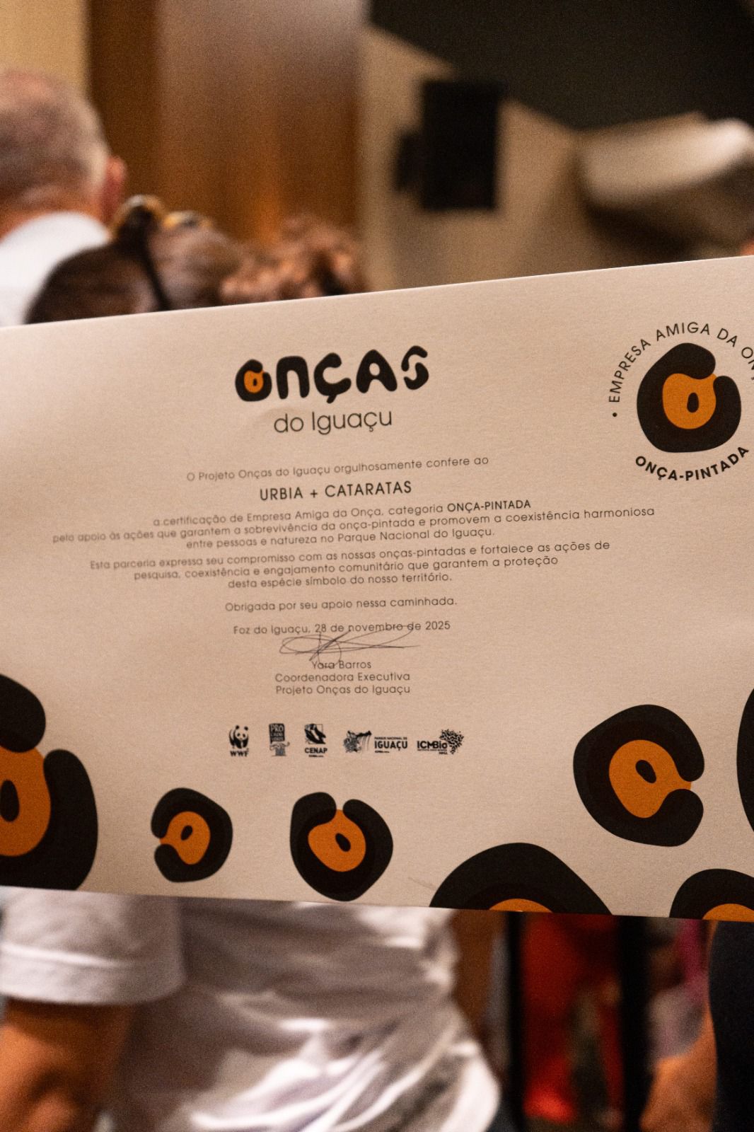 Durante o evento, a Urbia+Cataratas recebeu o selo “Onça-pintada”, o nível mais alto do programa Empresa Amiga da Onça, que reconhece instituições que se destacam na conservação ambiental e no engajamento com comunidades locais.