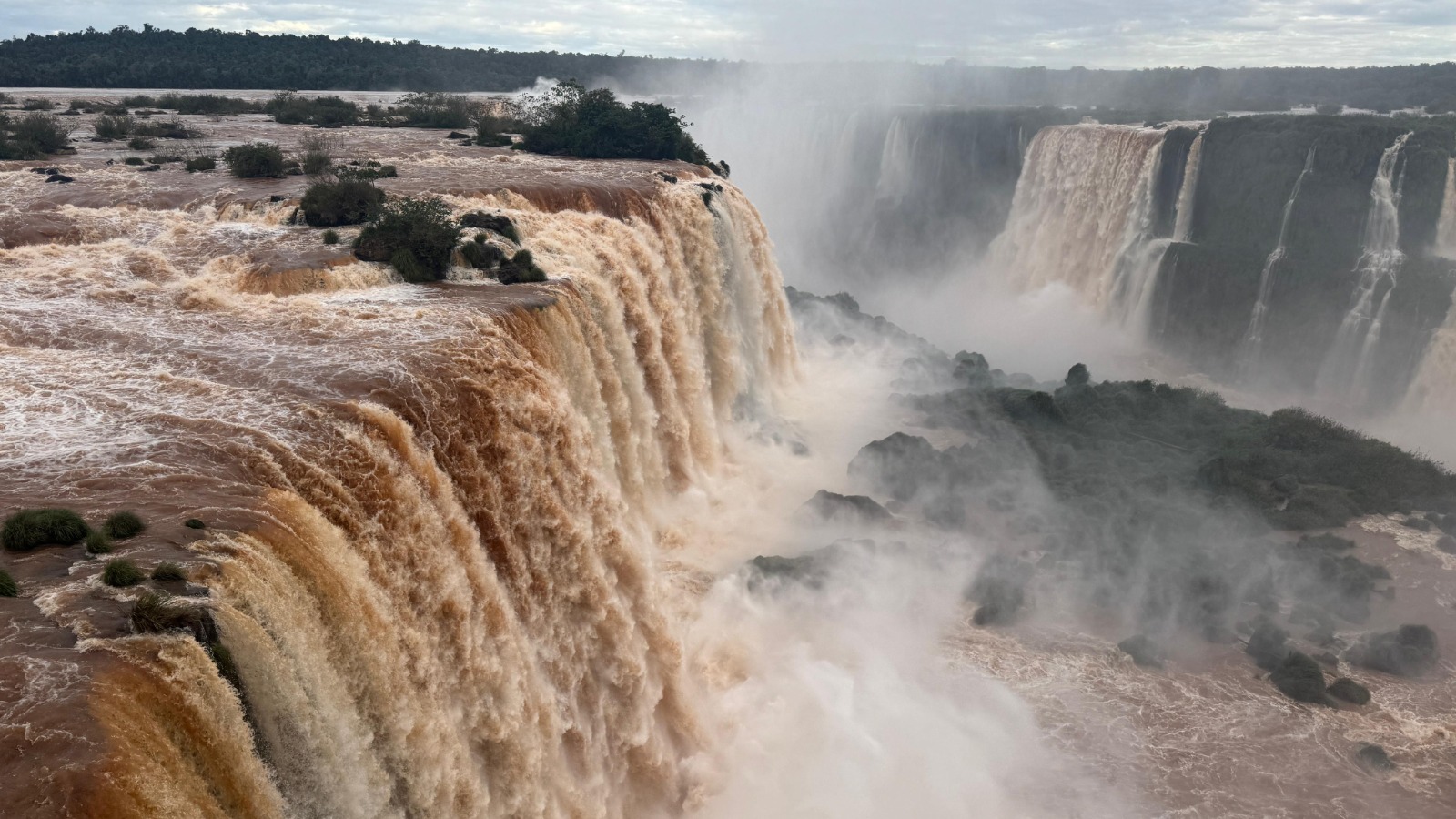 As Cataratas do Iguaçu, uma das Sete Maravilhas Mundiais da Natureza, registraram um aumento significativo em seu volume de água nesta quinta-feira (26). A vazão chegou a 2,6 milhões de litros por segundo, praticamente o dobro da média, que é de cerca de 1,5 milhão de litros/s.